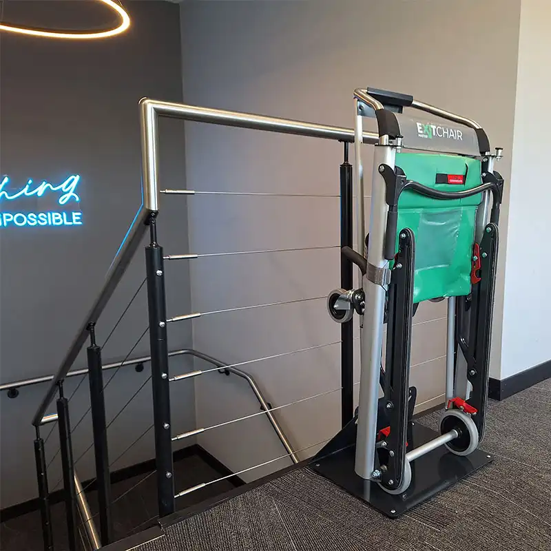 • Keeps evacuation chair accessible and ready for use